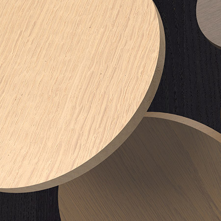 Timber veneer production offers designers unique opportunities for innovation. To create these unique wood veneers, fast growing timber species are transformed into infinite varieties and decorative effects through a process that peels the log, tones the wood by immersion and layers the sheets to create a new log. A fascinating production process, where a living material like wood can be enhanced and curated in a multitude of grains and colour.