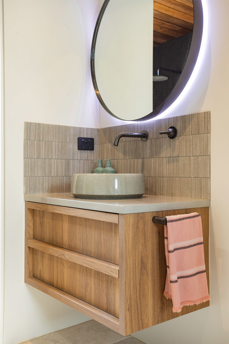 In Isabelle’s words, the Eveneer sits quietly with the other luxurious and natural finishes- timbers and stones.  “The veneer is stunning; I’d love to be able to work with it again.”